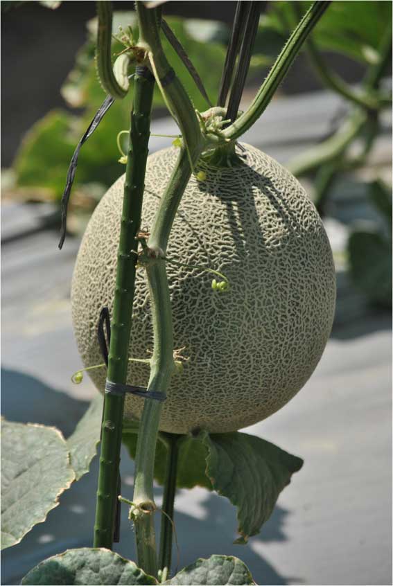 Di sentra-sentra melon di Jateng dan Jatim, budi daya melon selalu menggunakan ajir dan mulsa plastik hitam perak, tanpa kerudung plastik. Di Taman Wisata (Taman Buah) Mekarsari, Cileungsi, Kabupaten Bogor, melon dibudidayakan dalam polybag dengan rambatan tali di dalam green house. Melon di Taman Wisata Mekarsari ini dikhususkan bagi pengunjung yang berminat untuk ikut atraksi petik buah. Kualitas melon yang ditanam di dalam green house, pasti lebih baik dibanding dengan melon yang dibudidayakan di lahan terbuka. Dengan green house, melon bisa dibudidayakan sepanjang tahun tanpa kendala cuaca.