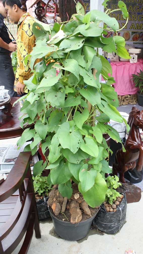 Pada pertengahan bulan Agustus, di pedalaman Jawa tengah, seorang kakek kedatangan cucu-cucunya yang lahir dan besar di Jakarta. Pada musim kemarau seperti itu, kebun (pekarangan) rumah si kakek kering kerontang. Singkong sudah habis dicabut. Buah-buahan tidak ada. Sebab mangga baru akan tua dan masak pada bulan Oktober. Yang ada hanyalah kelapa muda yang sudah bisa menyenangkan cucu-cucunya. Tetapi kakek tadi tampak membawa cangkul dan sabit, lalu menuju ke arah pinggir sungai. Di sana, kebun itu mirip dengan hutan. Selain rumpun bambu, ada pula pohon jengkol yang sedang lebat berbunga. Ada rumpun pisang yang sebagian daunnya mengering. Selebihnya tanaman albisia (sengon = jeungjing). Kakek itu lalu menggali tanah di bawah salah satu pohon sengon. Hanya beberapa jengkal dari permukaan tanah, kakek itu menemukan beberapa umbi berbentuk lonjong sepanjang 30 cm. berdiameter 15 cm. Umbi itu dibawa pulang, dikupas, dipotong-potong dan dikukus. Setelah masak, umbi yang berwarna putih bersih itu, empuk, manis dan aromanya sangat khas. Anak-anak Jakarta yang menikmati umbi kukus itu heran. Mengapa dari tanah yang kering kerontang itu kakeknya bisa menemukan umbi yang sangat enak? Lebih enak dari ubi madu dari Cilembu yang dioven?