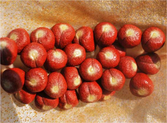 Kayu secang yang belakangan naik daun sebagai bahan “wedang uwuh” minuman khas Yogyakarta itu, mengandung zat Brazilin (C16H14O5) yang merupakan pigmen warna merah. Dalam perdagangan internasional Brazilin dikenal sebagai Natural Red 24. Awalnya Brazilin hanya dimanfaatkan sebagai pewarna minuman. Kemudian pada tahun 1600an, diketemukan cara mengekstraksi Brazilin, dengan merendam serbuk kayu secang dalam larutan sodium hidroksida (NaOH) atau potasium hidroksida (KOH); hingga zat ini bisa digunakan untuk memberi warna merah pada makanan. Paling mudah, warna merah diperoleh dari angkak (red yeast rice, red fermented rice, red kojic rice, red koji rice). Angkak merupakan beras verietas khusus yang difermentasi menggunakan ragi khusus hingga berubah menjadi sumber pigmen merah, selain sebagai bahan obat tradisional.