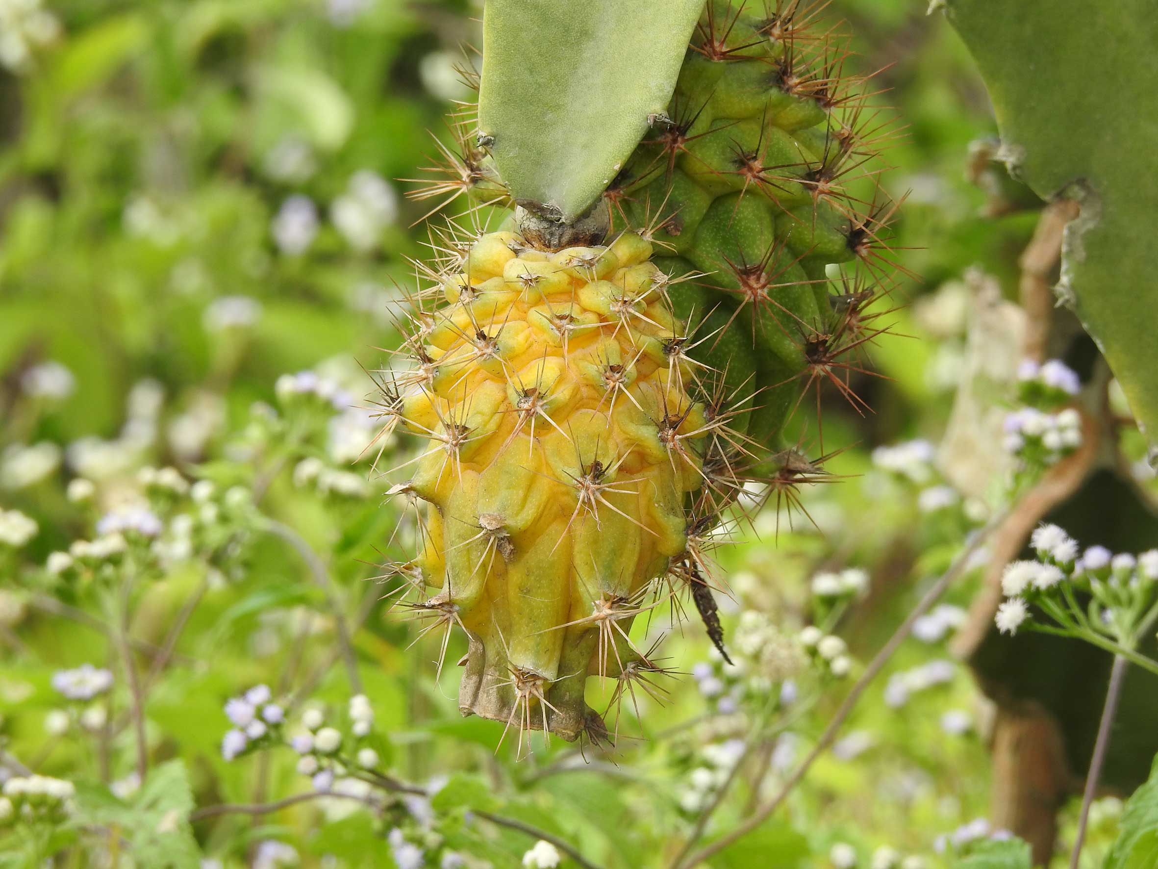 Buah naga kuning berduri Hylocereus megalanthus tak terlalu menarik bagi petani, pertama-tama karena batang (yang sekaligus menjadi daun); dan kulit buahnya berduri. Produktivitas Hylocereus megalanthus juga sangat rendah. Ukuran buahnya kacil, jumlah buah dalam satu tanaman juga sedikit. Ditambah lagi buah naga kuning Hylocereus megalanthus juga hanya bisa dibudidayakan di dataran tinggi, kawasan kering, dengan curah hujan di bawah 1.500 mm. per tahun. Di Indonesia tidak banyak kawasan dengan kondisi agroklimat seperti ini. Ketika dipaksa dibudidayakan di kawasan basah, buahnya tak akan manis.