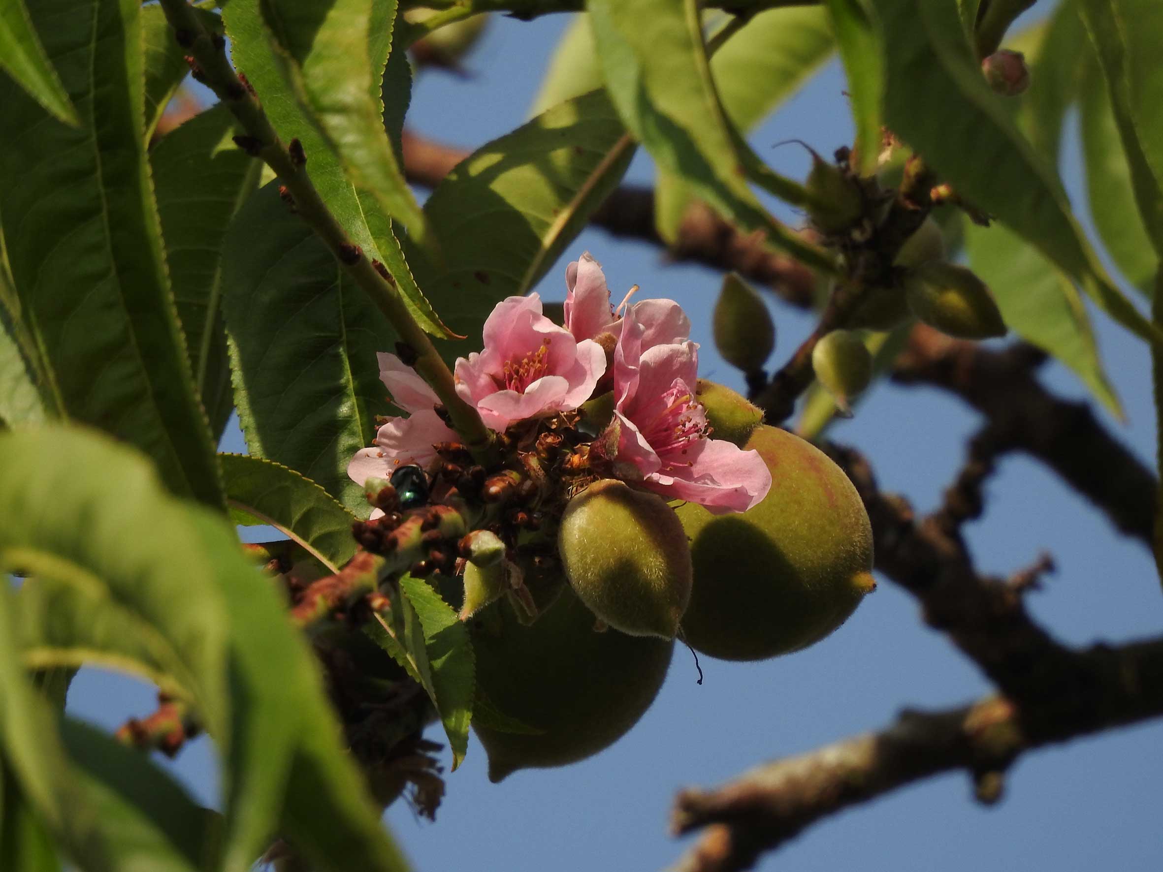 Di samping kanan Losmen Bu Djono, Kaldera Dieng, Wonosobo, Jawa Tengah; ada dua pohon persik. Dua pohon persik itu berbuah tanpa mengenal musim, meskipun buahnya kecil-kecil; hanya sekitar separo dari buah persik yang ada di pasaran.