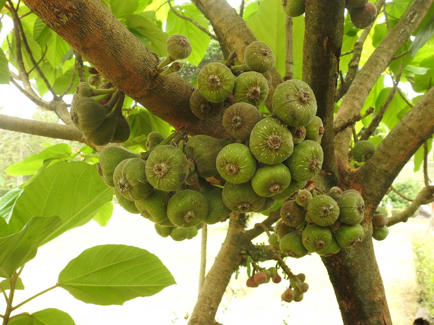 Karena sebutan “buah tin/ara merah yang manis dan langka” dianggap belum efektif meningkatkan penjualan, sebutan untuk tanaman hias ini berlanjut menjadi “buah surga”. Banyak yang tertipu karena pada dasarnya buah tin/ara gajah memang tidak enak. Di India, habitat asli tin/ara gajah, buah ini dipanen muda untuk dibuat pickle dikemas dan dipasarkan. Buah masak untuk bahan jelly. Di India pun buah tin/ara merah tidak pernah dikonsumsi langsung karena memang tidak enak. Jelly tin/ara gajah enak karena diberi tambahan gula, asam sitrat, dan essense. Zat warna tidak perlu karena warna merah buah ini sudah cukup menarik.
